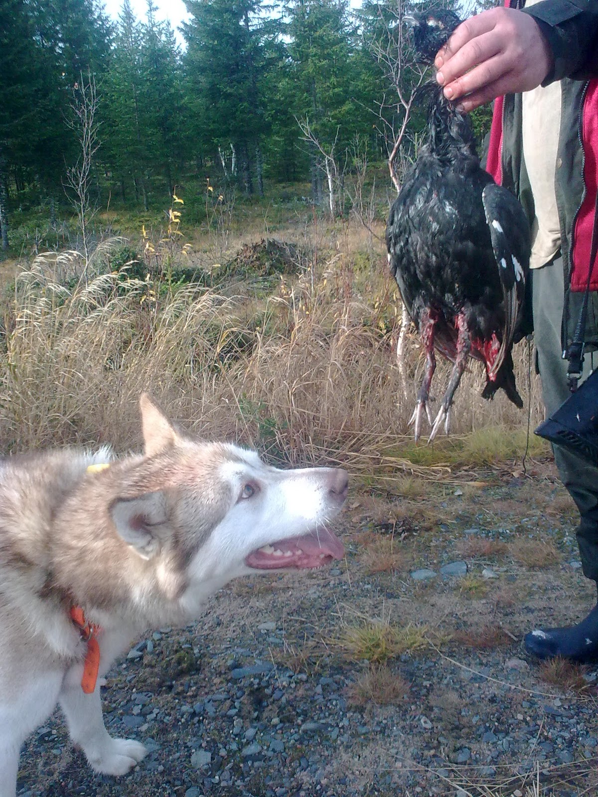 Viikonloppuna on käyty lintujahdissa, reissuilla mukana Jade, Nana ja Hiisi. Kamera oli mukana ja olisi tullut mukavia otoksia mutta joku unohti ottaa muistikortin mukaan joten saatiin vain huonoja kännykkäkuvia. Kanalintuja on mukavasti ja saalista tuli viikonlopun aikana akka- ja ukkoteeri. Akkateeren koirat nosti hienosti puuhun ja sieltähän se putosi.